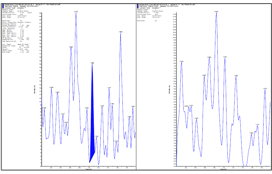 The chromatography observed during the course of validation was acceptable and representative chromatograms of standard blank, HQC, MQC and LQC samples are shown in (fig. 1 to 4).