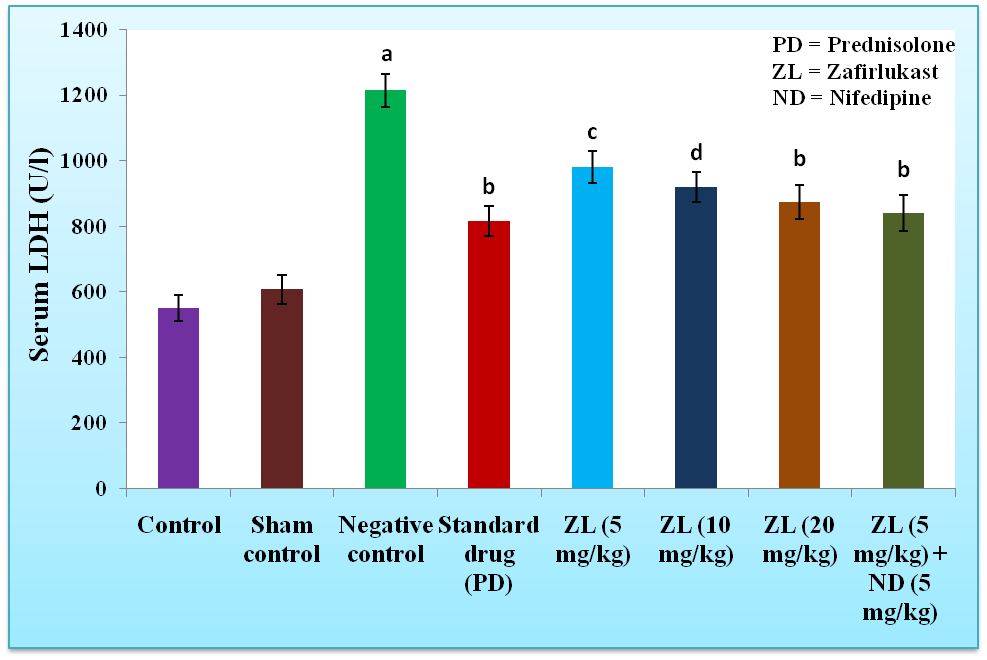 Effect of zafirlukast on global cerebral ischemia/reperfusion-induced on serum lactate dehydrogenase (LDH)