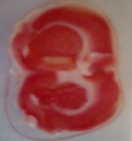 At the end of 24 h of reperfusion after global cerebral ischemia, animals were sacrificed by cervical dislocation under light anesthesia then brain was removed. The brain was kept overnight at 4 °C in the freezer. Frozen brain was sliced into uniform sections of about 1 mm thickness. The slices were incubated with 1% Triphenyltetrazolium chloride (TTC) at 37 ° C in 0.2 M tris buffer (pH 7.4) for 20 min. Triphenyltetrazolium chloride (TTC) is converted to a red formazone pigment by nicotinamide adenine dinucleotide (NAD) and lactate dehydrogenase and thus stained the viable cell deep red. The infarcted cells lost the enzymes as well as a cofactor and thus remain unstained dull yellow. The brain slices were placed over a glass plate. A transparent plastic grid with 100 squares in 1 cm2 was placed over it. The average area of each brain slice was calculated by counting the number of squares on either side. Correspondingly, the number of squares falling over the non-stained dull yellow area was also counted. Infarcts area was expressed as a percentage of the total brain volume. Whole brain slices were weighed. Infarcted area was expressed as a percentage of the total brain volume. Whole brain slices were weighed. Infarcted dull yellow part was dissected out and weighed. Infarct size was expressed as a percentage of the total wet weight of the brain [27].
