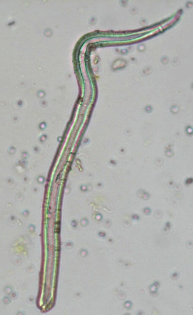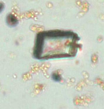 Fig. 3d: Prismatic calcium oxalate crystals (400x)
