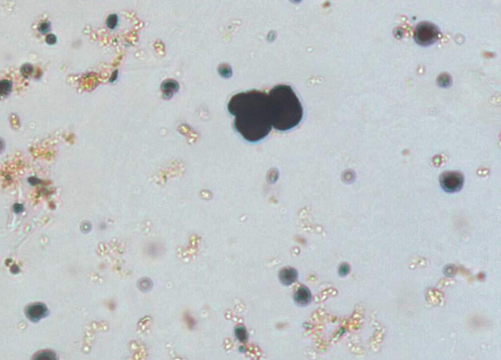 Fig. 3c: Druses calcium oxalate crystals (400x)