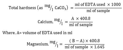 Where, B = EDTA used for hardness (both Ca and Mg) determination.