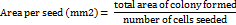 The area of the colony was calculated semi-automatically by scanning the plate, then measuring the area using Colony Area plugin in ImageJ software (NIH, USA) [18]. The formula for calculating area per cell seeded: