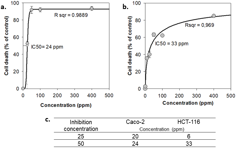 | Cancer cell lines | Extraction methods | IC50 (ppm) | References |