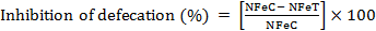 Where NFeC= mean number of feces of control group;