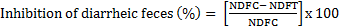 Where NDFC= mean number of diarrheic feces of control group;