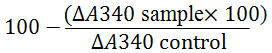 For the determination of the aldose reductase inhibitory activity of the different concentration of EFESC was selected, The incubation mixture, in a final volume of 250 μl, consisted of 67 mmol potassium phosphate buffer (pH-6.2), 0.4 M lithium sulphate, 150 μM NADPH, 300 μM DL-glyceraldehyde, enzyme (50 μl). Quercetin 0.5 μg/ml was used as standard inhibitor. Appropriate blanks were prepared for quercetin and the test samples without DL glyceraldehyde. The reaction was initiated by adding NADPH. The absorbance was read at 340 nm for 20 min using microplate reader (BMG Labtech) in a kinetic mode. The percent inhibition by test sample/quercetin was calculated by considering the control value as 100%, using the equation mentioned below. The median inhibitory concentration (IC50) was calculated using Finney software. A similar procedure was carried out with EEFSC at strengths of 5, 10, 25, 50, 100 and 200 μg/ml [29]. The percentage inhibition was calculated with the following formula: