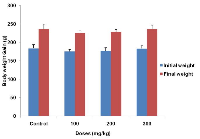 According to the Guidelines for the appropriate use of herbal medicines [9] (WHO, 1998), Different oral doses up to 2 g/kg body weight (BW) of an extract of Xylopia aethiopica was given to different groups of mice and observe 48 h later to determine any sign of toxicity. No toxic effect was observed during the period of the test (data not shown).
