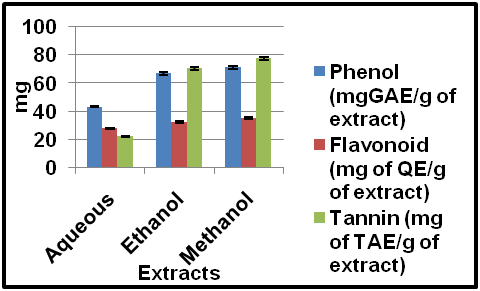 Fig. 1(a): Quantitative analysis (total phenol, flavonoid and tannin) data presented are the means of three replicates