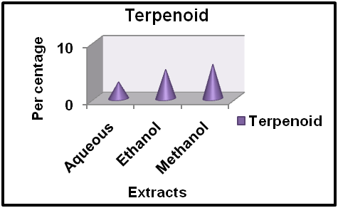 The methanol root extracts showed maximum terpenoid content (6%) followed by ethanol extract (5.1%) and aqueous extract (2.9%) (fig. 1b).