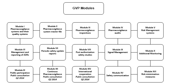 The key to the success of the legislation is the Good Pharmacovigilance Practice (GVP) document which replaced Volume 9A. The Figure 1 shows various GVP Modules and these were made modular to enable easier amendments. All key modules were available by July 2012 [8].