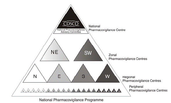 | Central Drugs Standard Control Organization (CDSCO) | Operate under the supervision of National Pharmacovigilance Advisory Committee to recommend procedures and guidelines for regulatory interventions. |
