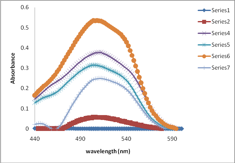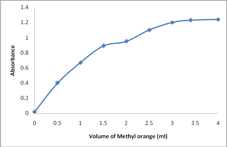 Fig. 4: Effect of variation of volume of Methyl orange dye on the absornance at 507 nm.