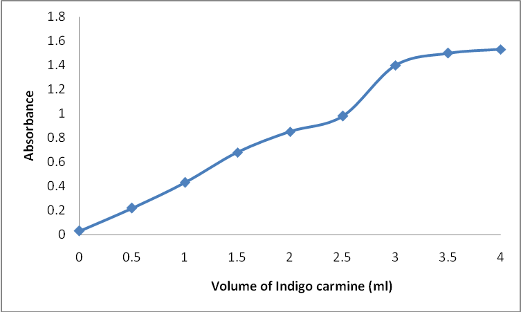 Fig. 5: Effect of variation of volume of Indigo carmine dye on the absornance at 660 nm.