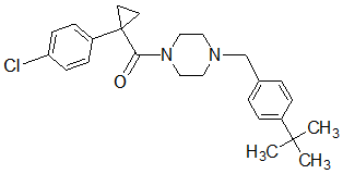 LC-MS (ESI, Positive): m/z: [M+H]+: 406.9; 1H NMR (400 MHz, DMSO-d6): δ 8.95-8.93(m,1H) 8.86-8.85 (m, 1H), 8.49-8.47 (m,1H) 7.77-7.4 (m, 2H), 7.35-7.30 (m, 2H), 7.29-7.27(m, 1H) 7.21-7.15(m, 2H), 3.62 (s, 2H), 3.45-3.38 (m, 4H), 3.34-2.30(m, 4H)1.30-1.27 (m, 2H), 1.17-1.14 (m, 2H). Elemental analysis: Calculated (%) for C24H24ClN3O: C 71.01, H 5.96, N 10.35; Found: C 71.10, H 6.01,N 10.41.