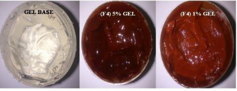 | F4 gel 5% | Reddish brown | Clear and Translucent | 8 | 7.2 |