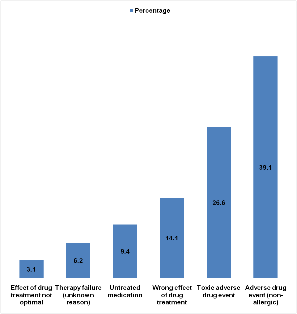 Majority of the identified drug therapy problems were adverse reactions (65.7%), fig. 1.
