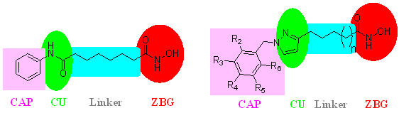 Ligand and structure-based computer-aided drug design strategies includes several computational approaches that have been repeatedly applied to design and discover the new molecules. Practically, neither single ligand-based nor structure-based drug design strategy approach is unable to fulfil the needs of drug discovery and development [1-6]. Vorinostat (SAHA) (fig. 1) and other HDACi hamper different classes of histone deacetylases (HDACs) by interacting with the active pocket site of HDAC proteins leading to interfere with different tumor mediators. All these HDACi have four essential structural elements such as a surface recognition cap group, a connecting unit, a linker moiety and a zinc-binding domain (ZBD). The connection of aromatic cap group with linker moiety in HDACi is essential for HDAC inhibitory activity [7, 8]. The substitution of amide connecting unit of SAHA with a heterocyclic nucleus has resulted in the development of SAHA like analogs. These substituted derivatives possess HDAC inhibitory activity against a variety of HDAC classes, indicating that heterocyclic nucleus as connecting unit retains the essential characteristic required for activity [9-15]. The key intention of the present study was to apply the structure and ligand-based tactics to recognize the importance of heterocyclic connecting unit at SAHA analogs. This study consists of numerous consecutive steps such as preparation of data set, the establishment of structure-activity relationship by 3D QSAR approach, molecular docking of ligands in the active site of a protein molecule, e-pharmacophore mapping and establishment of a correlation between structure and biological activity.