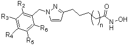 | Comp. No. | R2 | R3 | R4 | R5 | R6 | n | HDAC1 IC50 (µm) |