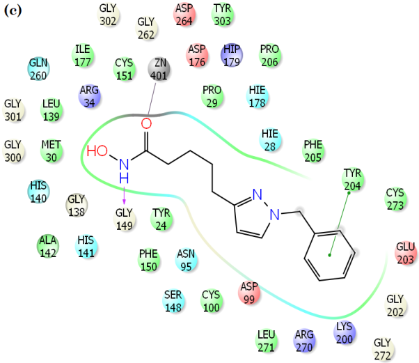 Conclusion: The outcome of the present research work clearly indicated that pyrazole nucleus added an essential hydrophobic feature in cap group and could be employed to design the ligand molecules more accurately.