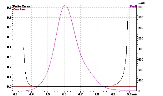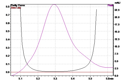 Fig. 10: (a) Overlain Chromatogram of NEPA & its Degradation Product. (b) Peak purity for NEPA Drug Peak (c) Peak purity for major degradation Peak in HCl
