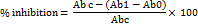 Abc = absorbance of DPPH, Ab1 = absorbance of extract with DPPH and Ab0 = absorbance of extracts without DPPH (sample blank).