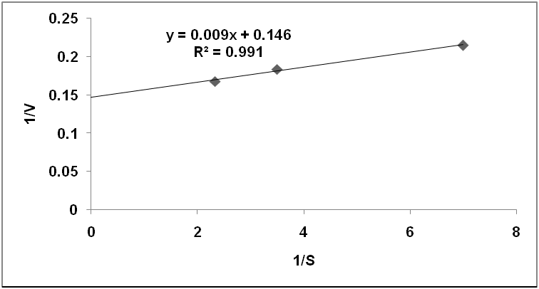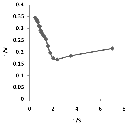 Fig. 7b: Display of non-linear behavior by Lineweaver–Burk plot