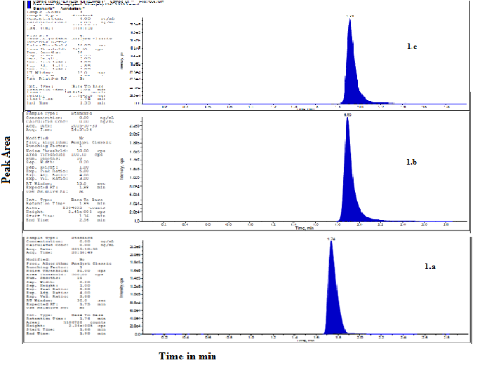 Fig. 1: Standard chromatogram of MET (1a), LIN (1b) and SAX (1c)