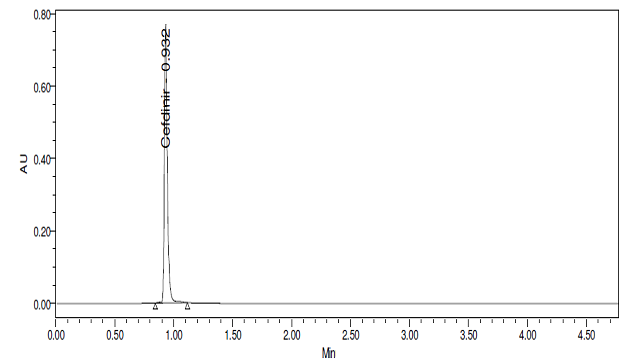 The Precision of the method was determined by injecting a standard solution of cefdinir for six times and measured the area for all six injections in UPLC chromatographic system.