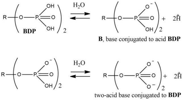 Consecutive ionization stages of phosphoric residues of BDP lead to the splitting of two protons per phosphate group while the main process proceeds in the first stage (fig. 2).