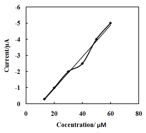 In order to develop a voltammetry method for determining the DLTD drug in pharmaceutical and human urine samples, we selected the square wave voltammetric mode, because the peaks are sharper and enhanced defined at the lower concentration of DLTD than those obtained by cyclic voltammetry. According to the obtained results, it was possible to apply this technique to the quantitative analysis of DLTD. The phosphate buffer solution of pH 9.0 was selected as the supporting electrolyte for the quantification of DLTD as it gave maximum peak current at pH 9.0. Square wave voltammograms obtained with increasing amounts of DLTD showed that the peak current increased linearly with increasing concentration shown in Fig. 6.