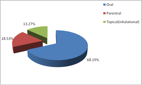 The routes of administration of antibiotics were found to be oral (81.81%), parenteral (9.09%) and topical (inhalation) (9.09%). It has been observed that the trend of prescribing drugs under the generic name is declining [15]. We found that none of the drugs was prescribed by generic names. Such practice may be an evidence of vigorous promotional strategies by pharmaceutical companies. It may undermine some of the goals of essential drug concept. On the other hand, prescribing by generic name may reduce overall expenditure on drugs especially on newer antibiotics etc. The practice of prescribing drugs by brand name thus should be discouraged as the use of generic is a cheaper alternative.