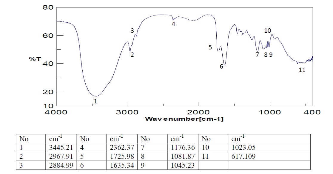 Fig. 1: IR profile of the treated extract