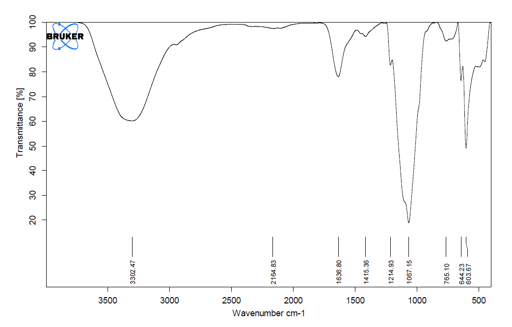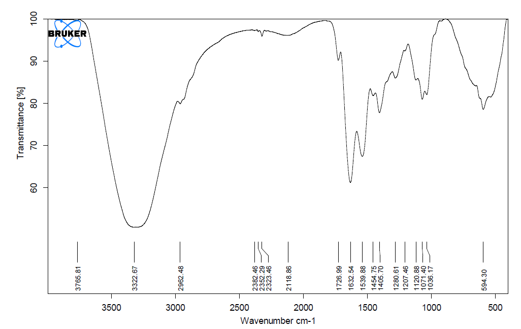 One milligram of crude dry EPS was directly used for FTIR (Brucker, tensor 37) analysis. The conditions used were 16 scans at a resolution of 4 cm-1 measured between 400 cm-1 and 4000 cm-1.