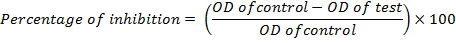 The results were expressed as the mean±Standard error of the mean (SEM). The statistical difference between the test and control groups were evaluated by one-way analysis of variance (ANOVA) by Graph pad prism 6.0 software and followed by Dunnett's t-test.*p≤0.05, **p≤0.01, ***p≤0.001 represents a significant difference between the control with the test group.
