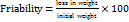 The Veego Friability apparatus (BT-2D) was used for determining friability, wherein 5 tablets were pre-weighed and placed in the friabilator allowed to operate at 25 revolutions per minute for 4 min. After the test, tablets were recovered, dusted re-weighed. The percentage friability was calculated as;