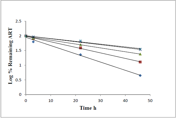 The observed first-order rate constants in for the degradation of ART at selected HP-ß-CD concentrations are listed in Table (2).