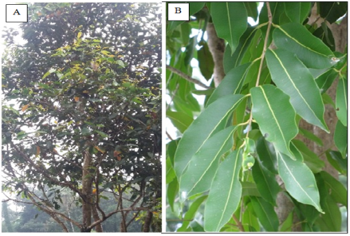 Fig. 1: A. Syzygium cumini tree, B. Syzygium cumini leaves