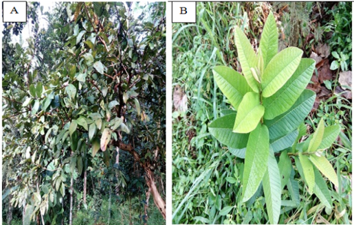 Fig. 2: A. Psidium guajava tree, B. Psidium guajava leaves