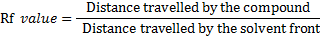 | Distance traveled by the solvent front (cm) | Distance traveled by the compound (cm) | Rf value |