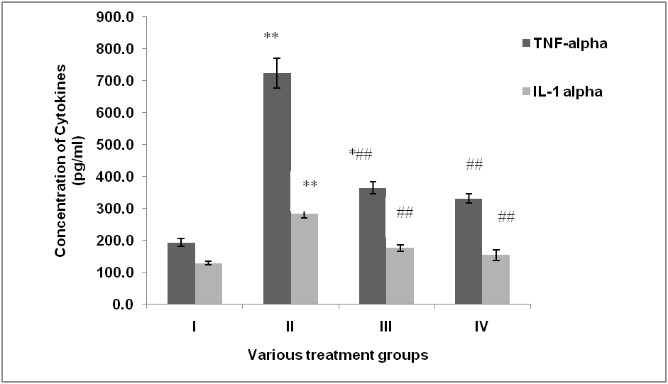 Serum proinflammatory cytokines such as TNF-α and IL-1α were estimated by ELISA kits.
