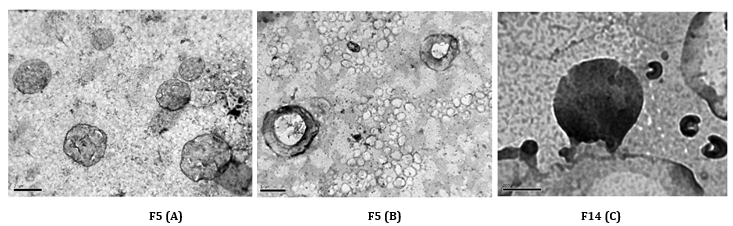 It is demonstrated that the vesicles are well identified and present in a nearly perfect sphere-like shape having a large internal aqueous space relative to the sphere diameter [51].