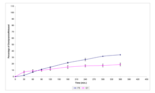 The release profile of CLM from the prepared niosomal gel in Sorensen's phosphate buffer of pH 5.5 is graphically represented in Fig. 9. It was evident that the incorporation of the drug in niosomes resulted in delayed release which was further delayed in case of niosomal gel due to formation of an additional diffusion barrier to drug release [59]. In case of the prepared niosomal gels a noticeable and gradual control of release behavior of CLM could be observed during the whole release run (19.00%) of CLM was released from G1 after 6 h.