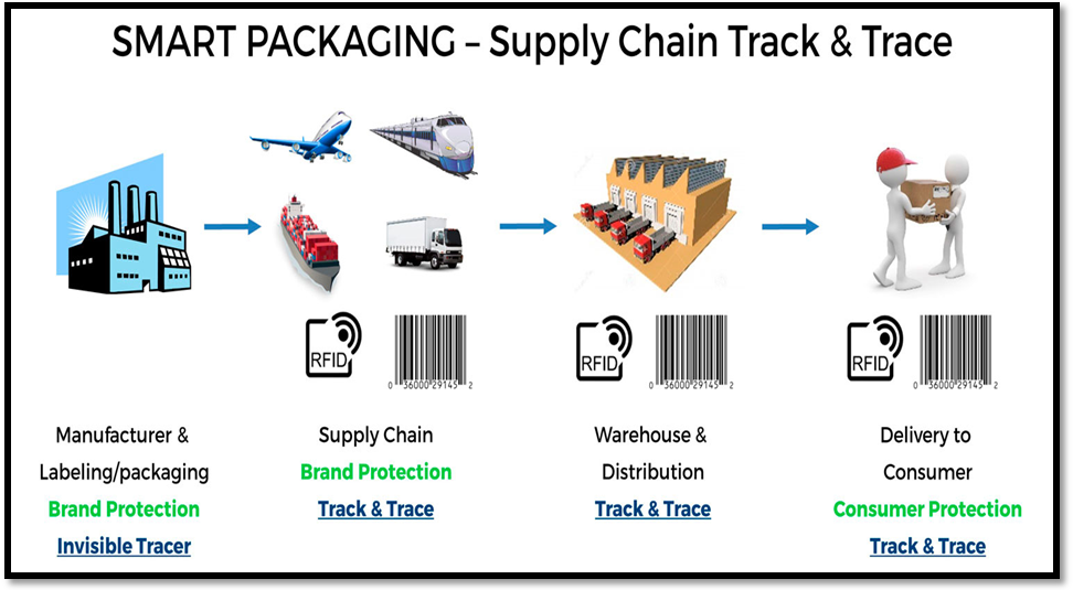 Fig. 9: Smart packaging using track and trace technolog [58]