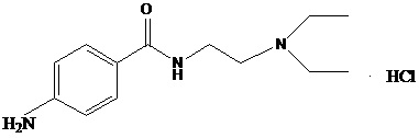 Procainamide (PAH) is a pharmaceutical antiarrhythmic agent used for the medical treatment of cardiac arrhythmias and used for both supraventricular and ventricular arrhythmias indicated in the treatment of premature ventricular contractions, ventricular tachycardia, trial fibrillation and paroxysmal a trial tachycardia [1]. Procainamide's major active metabolite is N-acetylprocainamide(NAPA), which is approximately equipotent with the parent drug as an antiarrhythmic agent [2]. NAPA has an elimination half-life about twice that of procainamide, and it can reach somewhat higher plasma levels during chronic procainamide administration [3]. PAH measurement in plasma is advocated as a useful, if not mandatory, guide to therapy. The accepted therapeutic concentration range for PAH is 4-8 mg/liter, but its major metabolite, N-acetylprocainamide, which also has an antiarrhythmic effect in humans, is found in similar concentrations in the plasma of patients who are undergoing therapy with procainamide. Therefore, therapy can be optimal only if both procainamide and N-acetylprocainamide are considered [4]. The structure of procainamide hydrochloride is shown below.