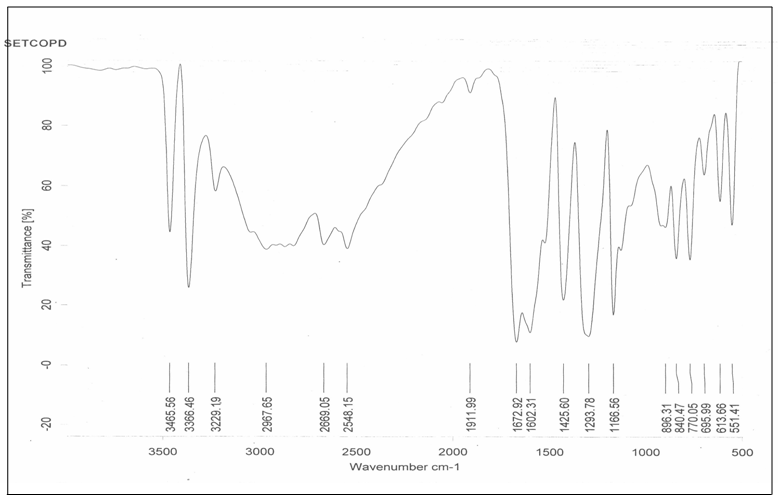 Fig. 2: FT-IR spectrum of p-aminobenzoic acid, the product obtained during the oxidation of procainamide by permanganate in acid medium.
