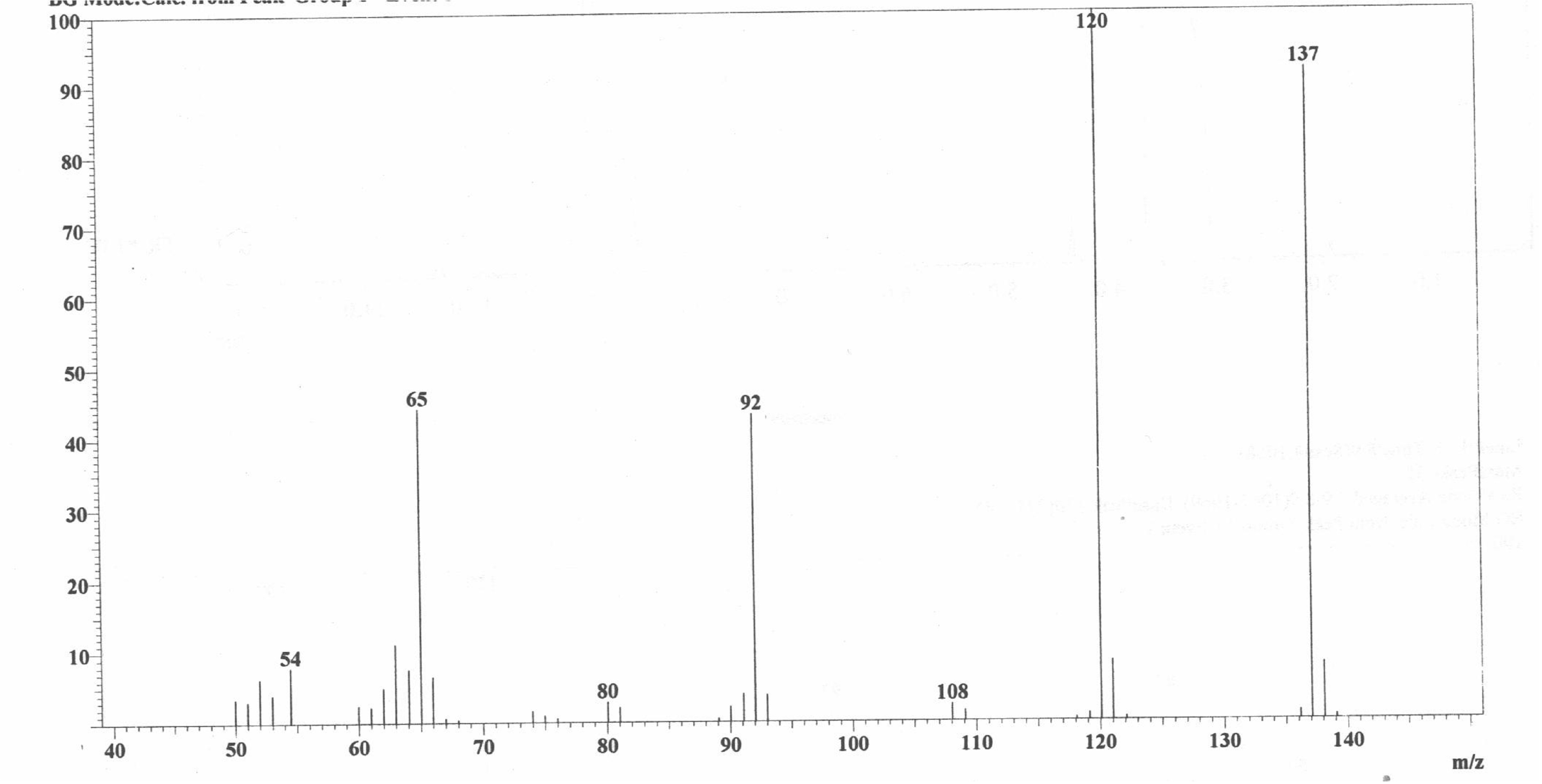 Fig. 3: GC - MS spectra of the product p-aminobenzoic acid, showed molecular ion peak at m/z 137 amu.