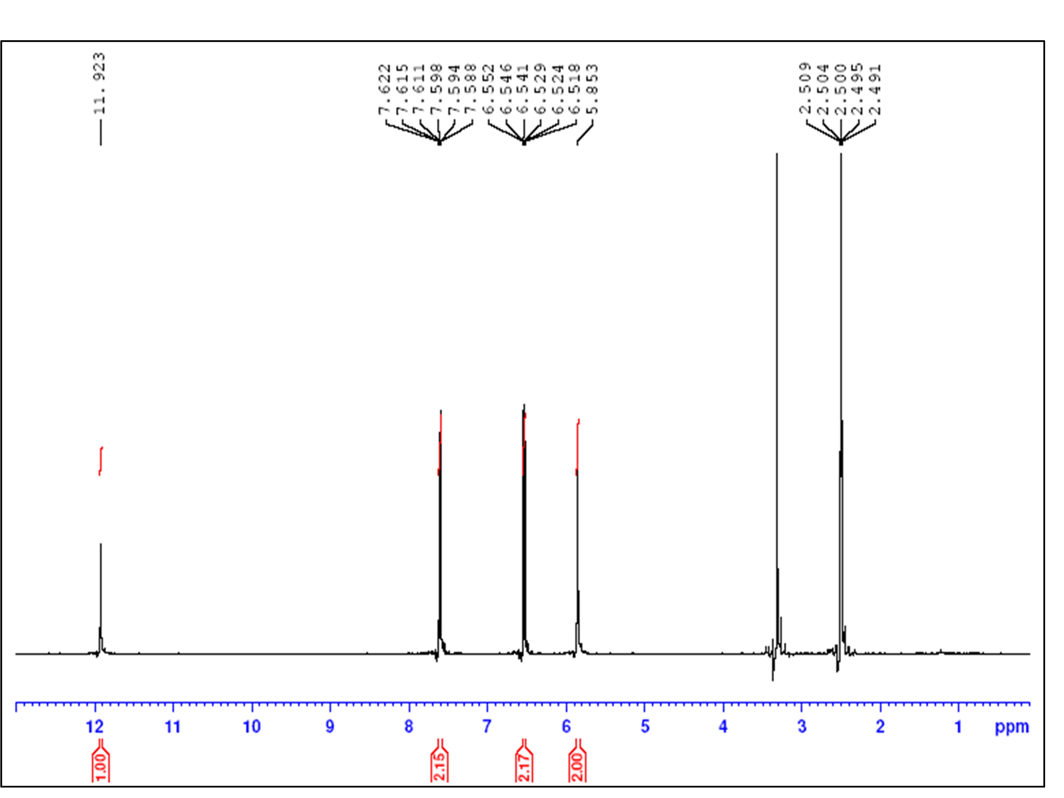 Fig. 4: 1H NMR spectrum of p-aminobenzoic acid, the product obtained during the oxidation of procainamide by permanganate.