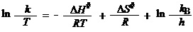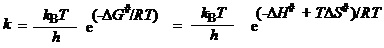 Where k is the rate constant, kB is the Boltzmann’s constant, h is the Planck’s constant, R is the gas constant, T is the absolute temperature and ∆G# is the free energy of activation. The linear form of above equation is