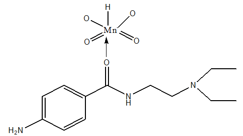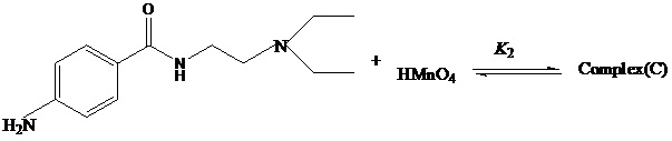 Mn(VII) is widely used as an oxidizing, disinfectant and also as an analytical reagent. These reactions are governed by the pH of the medium. Among six oxidation states of manganese, from +2 to +7, Mn(VII), is the most potent oxidation state in acid medium with reduction potentials [5] 1.69 V of Mn(VII)/Mn(IV) couple and 1.51 V of Mn(VII)/Mn(II) couple. Chemical oxidation using Mn(VII) has been widely used for treatment of pollutants in drinking water and wastewater applications for over 50 years. The oxidation by Mn(VII) ion finds extensive applications in organic syntheses [6]. During oxidation by Mn(VII), it is evident that Mn(VII) is reduced to various oxidation states in acidic, alkaline and neutral media. According to Insauti et al. [7], it has several advantages as an analytical reagent e. g. it is strong vividly colored serving as its own indicator. In acidic medium active species of Mn(VII) exists in different forms as HMnO4, H2MnO4+, HMnO3, and Mn2O7 depending on the nature of the reductant, the oxidant has been assigned both inner sphere and outer sphere pathway in their redox reactions [8, 9]. In earlier report on oxidation by Mn(VII) in acidic media, it has been observed that some investigators have found the induction period [10] and some have noticed autocatalytic nature either by Mn(II) or by one of the products obtained by substrates [11]. Hence it is worthwhile to investigate the Mn(VII) oxidation of procainamide hydrochloride in acid medium to see such ambiguity.
